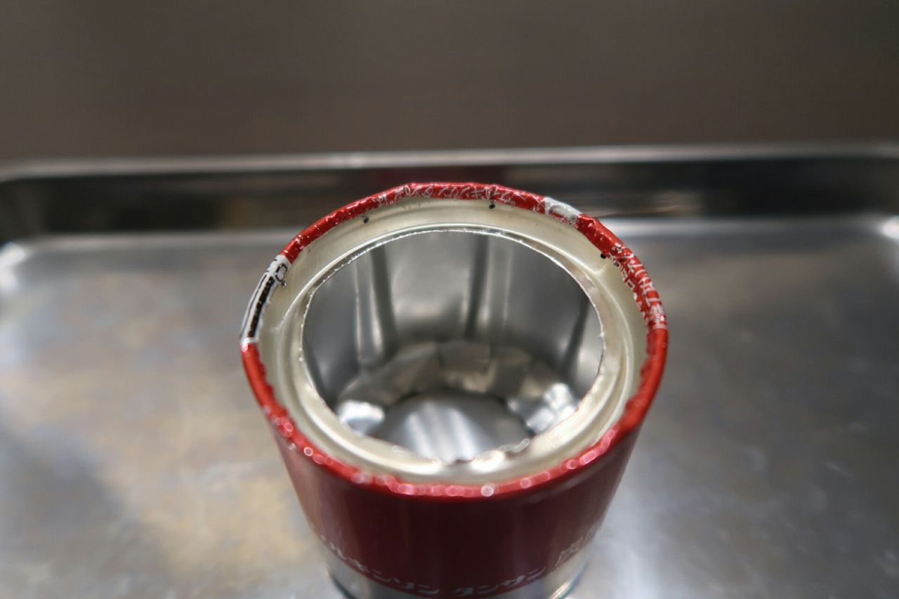 缶の上半分がインナーパーツ、下半分がアウターパーツとなります。インナーの高さが完成時のストーブの高さとなるのでここで調整します。