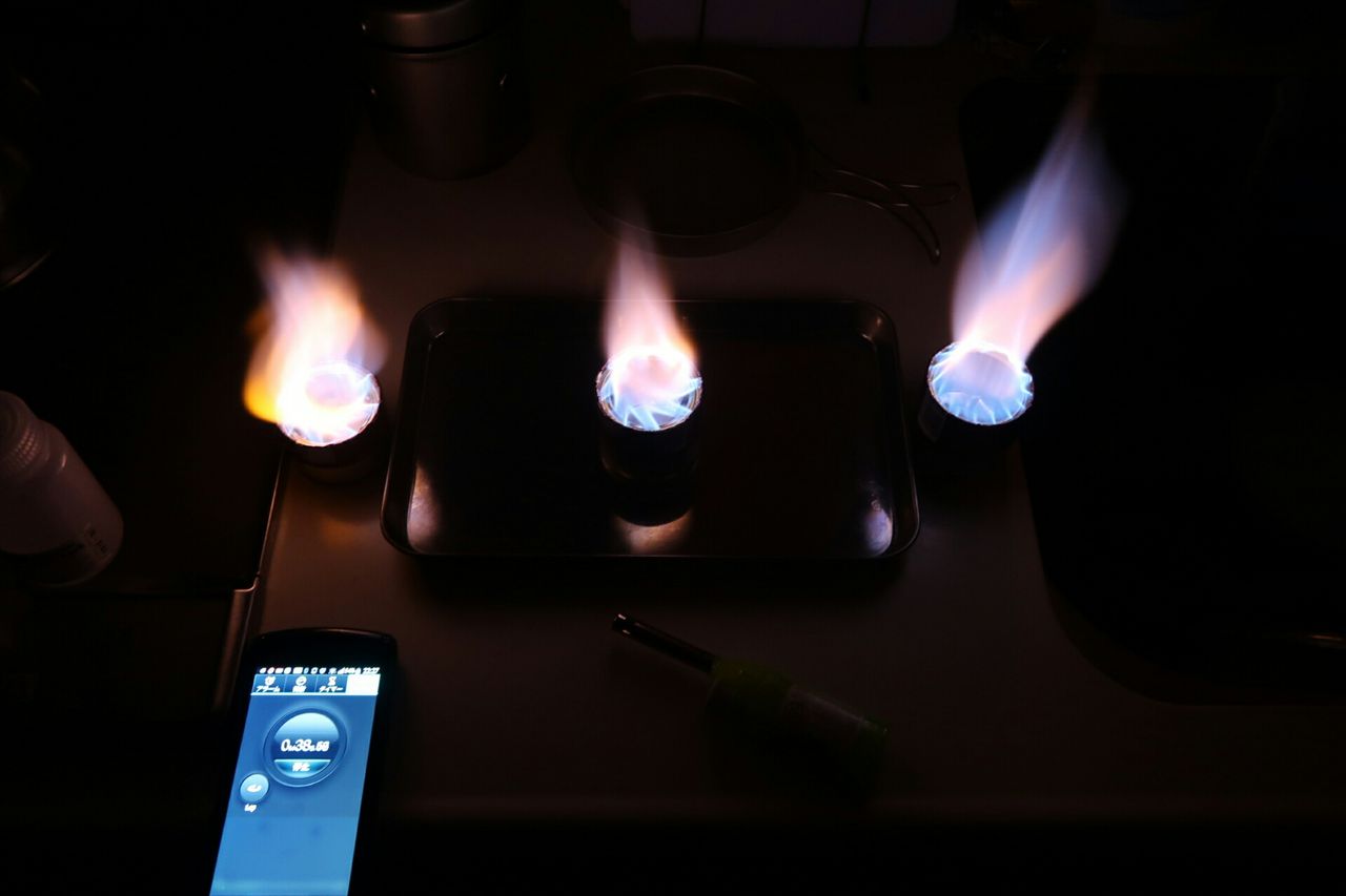 実際に8炎孔タイプより16炎孔タイプのほうが燃焼スピードが早い傾向にありました。10ml燃焼タイムは本体の高さが同じ40㎜程度で、8炎孔タイプはだいたい3分10秒前後、16炎孔はだいたい2分20秒くらいです。