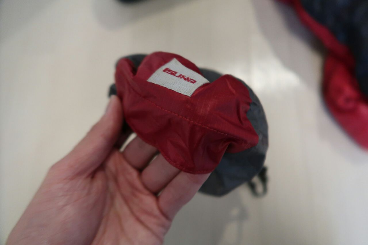 スタッフバッグはシュラフが引っ張り出しやすいように、口と反対側に手をひっかけるポケットがついています。
