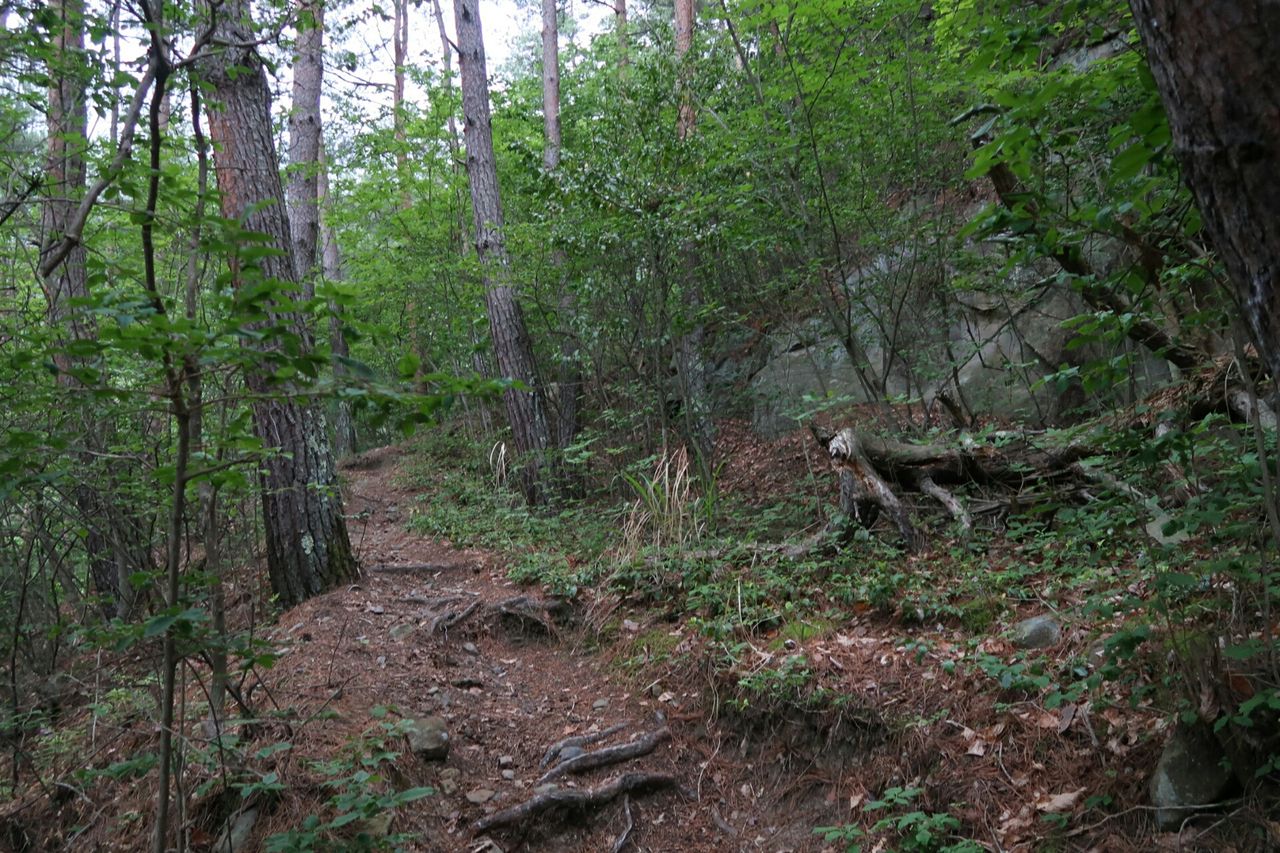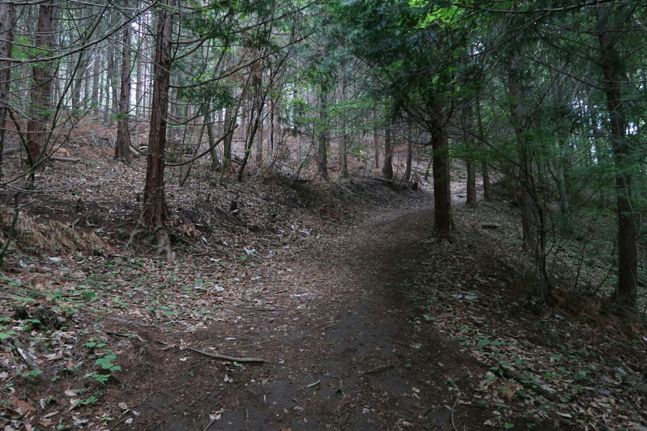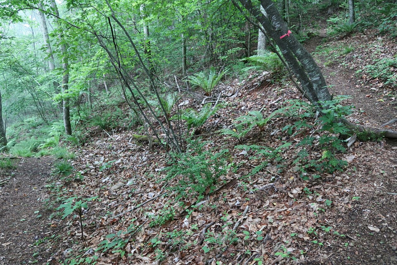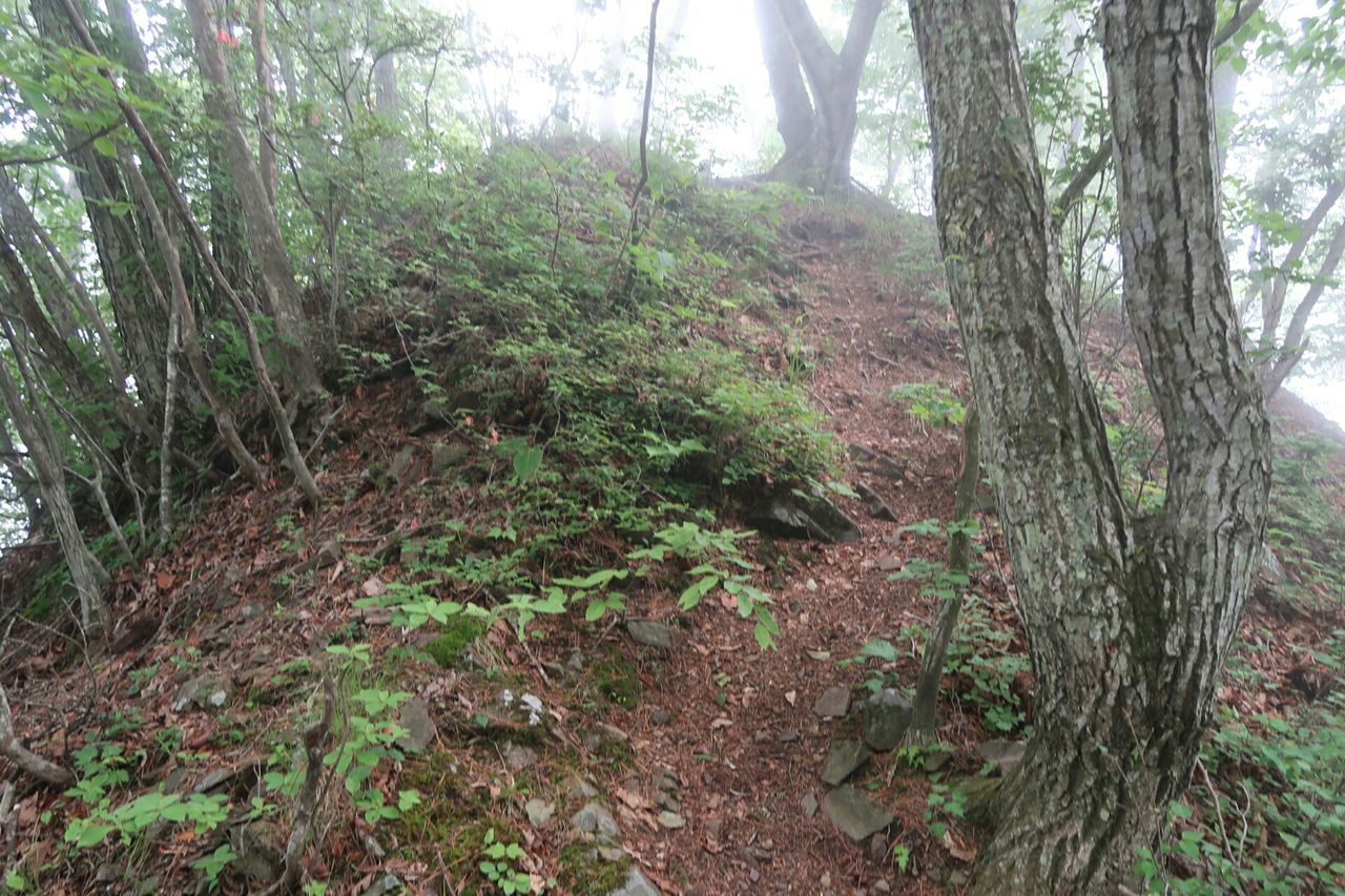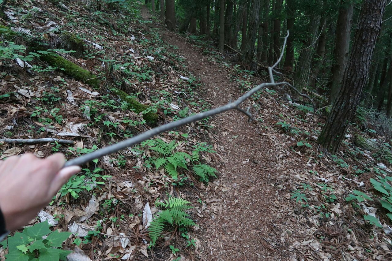 一番乗りで登るのは楽しいが、蜘蛛の巣が次々に足や顔にまとわりつくのは非常にストレスがたまる。対策として蜘蛛の巣を破壊するため、木の枝をずっと振り回しながら進んできた。