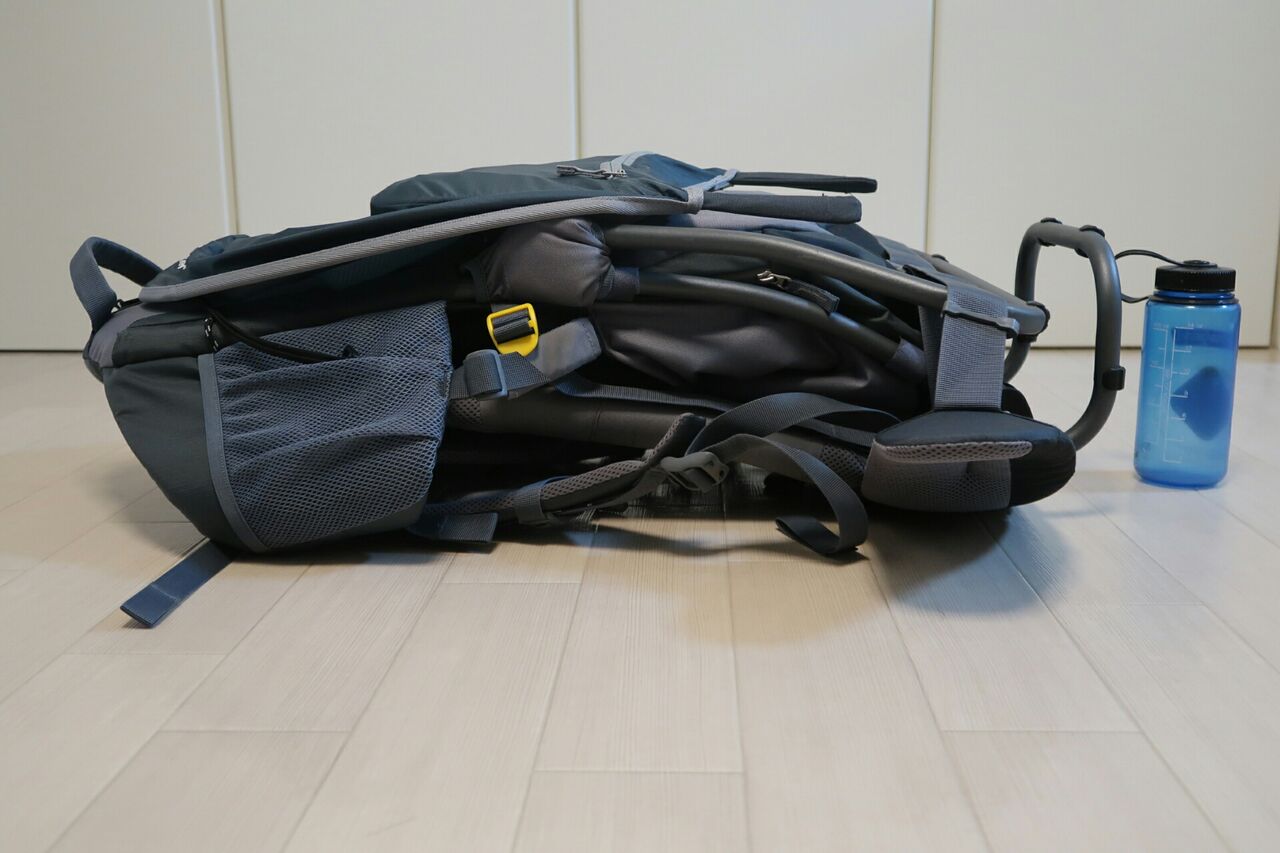 背負いやすいが長時間やると流石に肩に来る。僕個人としては、肩で支えられる分、抱っこひもより背負いやすいと思うが、山に登らない人からしたらキツいと感じるかもしれない。