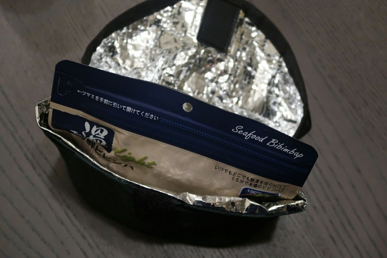 保温の場合、尾西やサタケなどのアルファ米や、モンベルのリゾッタなどの袋がそのままピッタリ入る。このままの状態で食べれば冷めにくい。