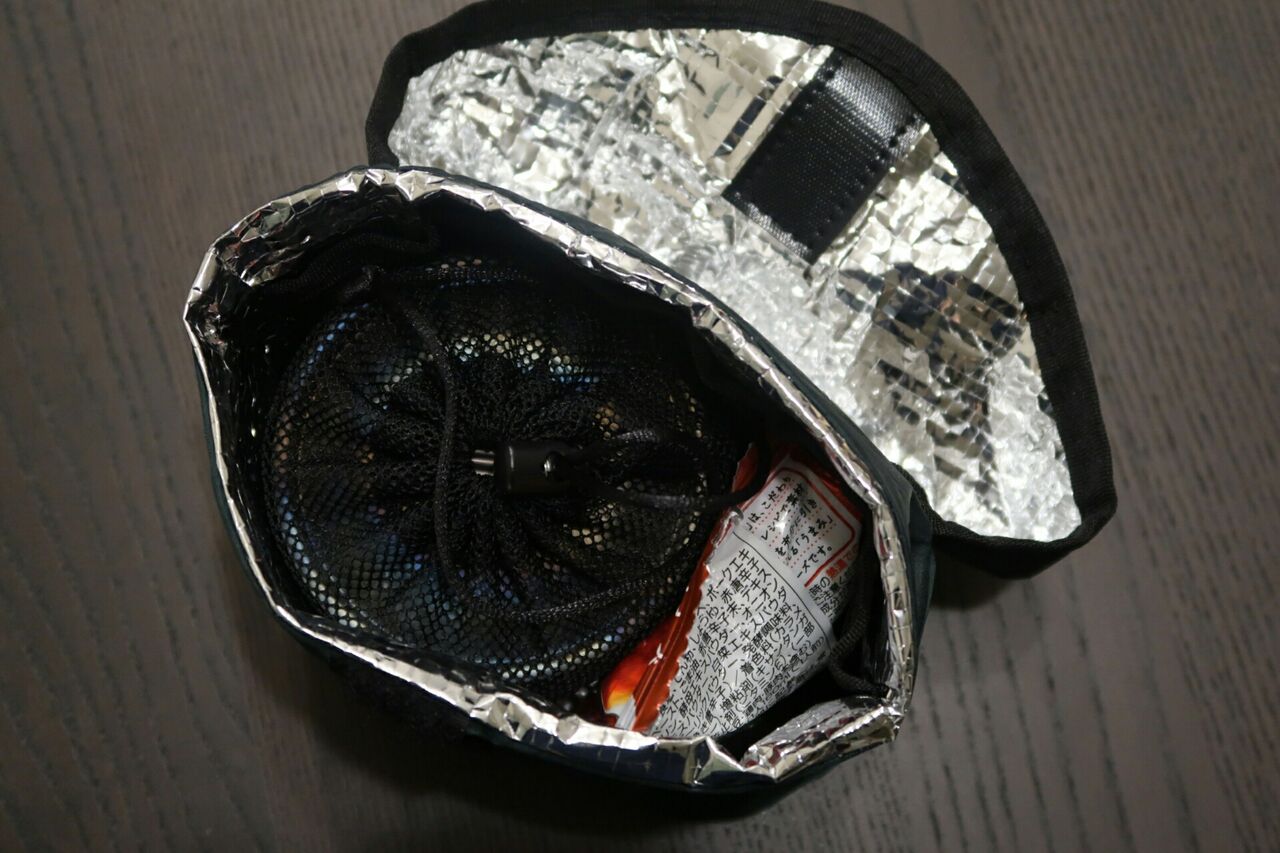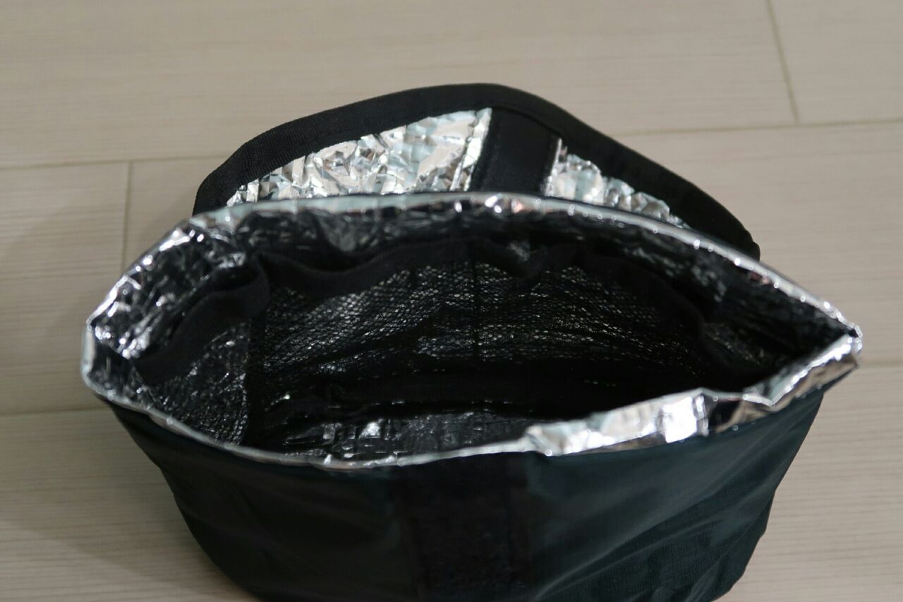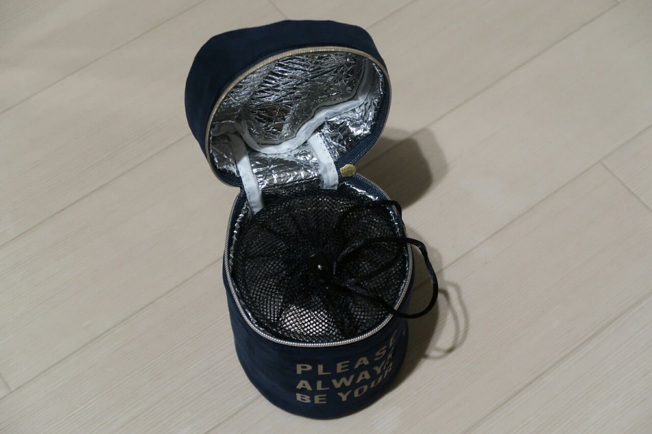 中にはメッシュの内ポケットがあり、保冷剤を入れられるらしい。他にも使えそう。