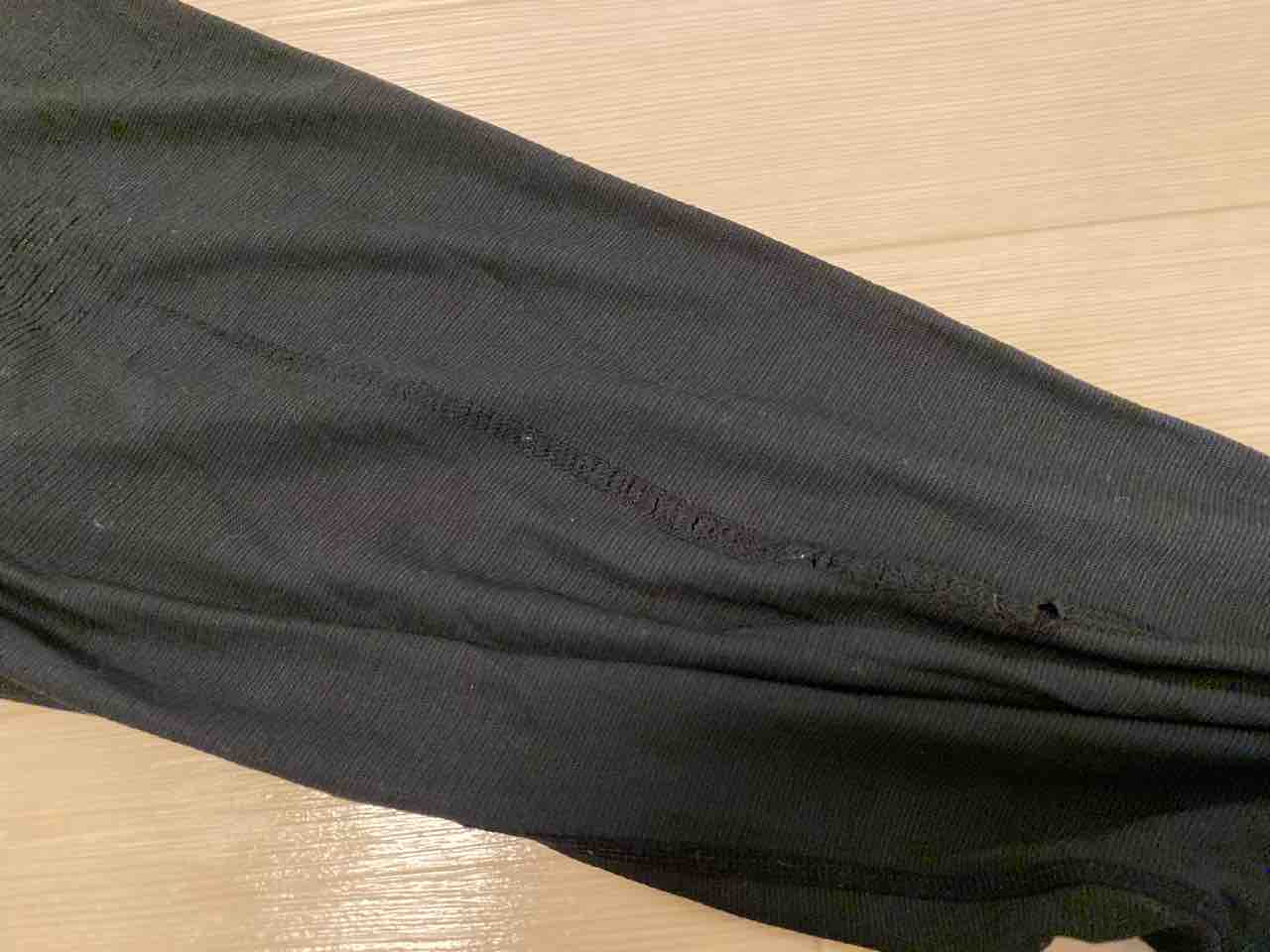 この生地の繊細さというか、脆弱さがなければ最高なのだが…。とは言え、上半身であれば藪漕ぎでもしない限りアンダーウェアにダメージが来ることはそうそう無いし、ウェア同士の摩擦でほつれるとは言え、着れなくなるほどではない。多少破れていてもどうせ中に着ているので人目には触れないのだ。