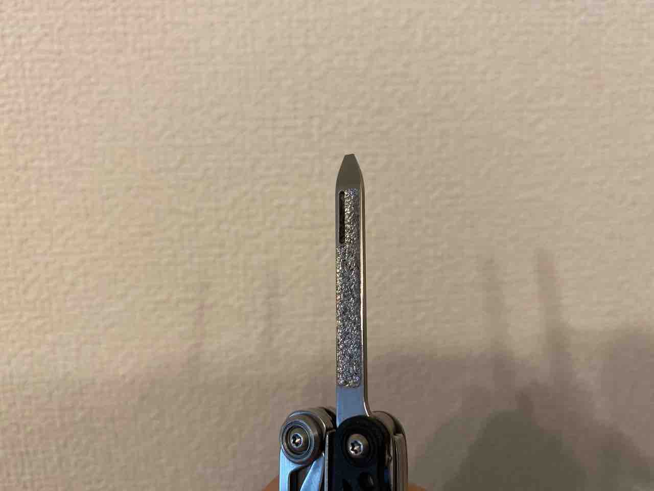 爪ヤスリの先にはフラットプラスドライバーが付いている。見た目はマイナスドライバーだが、細かいつくりなのでプラスのネジ頭でも対応できるのだ。