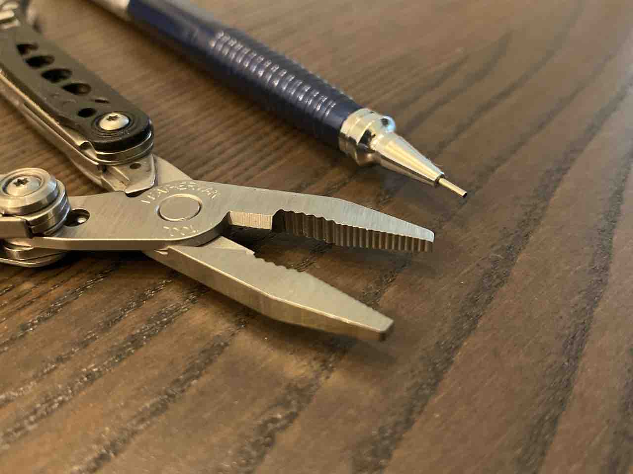 プライヤーを開いた状態。根本にはワイヤーカッターを備える。スプリング機構なので使いやすいし、展開するときのガチッとなるギミックがたまらない。