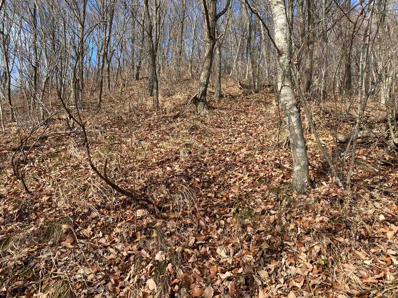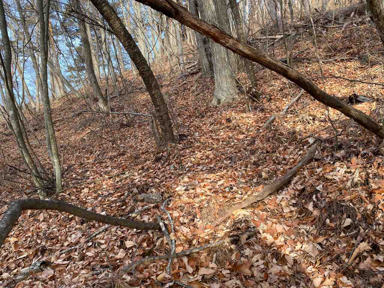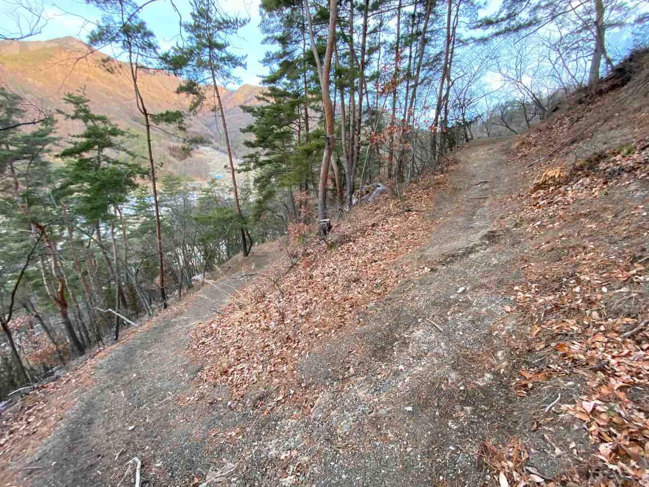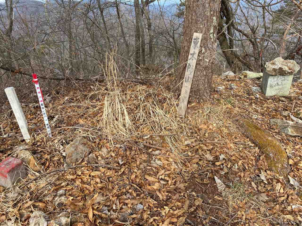 尾根筋を行くのがセオリーだが、斜度がきつく、落ち葉が多いので一筋縄ではいかなかった。シカの獣道を辿りながら、時折直登し、尾根の上の平坦部を目指す。シカ先輩、あざす!