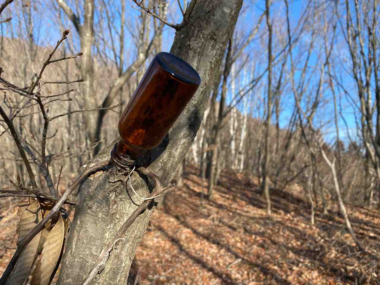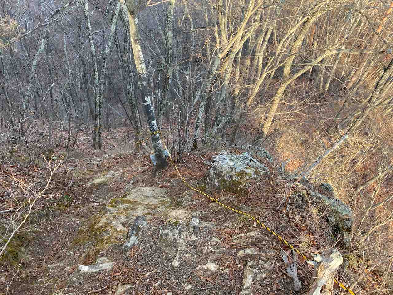 林業用のテープがたまに木に巻かれているが、ほとんど当てにならない。ほぼ道は消失。