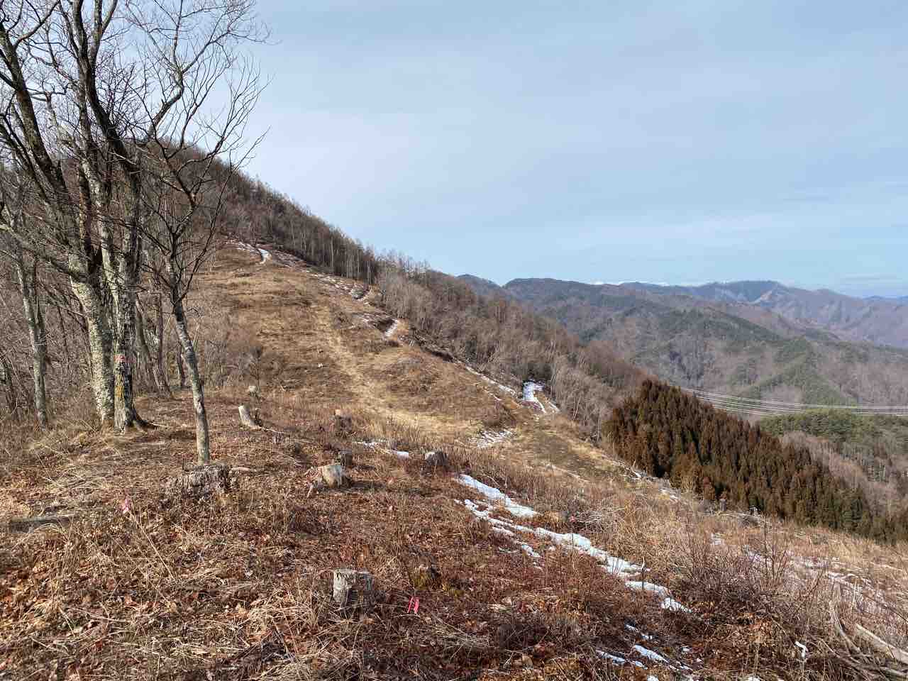 またなだらかな尾根に乗ると人間の入った痕跡が。