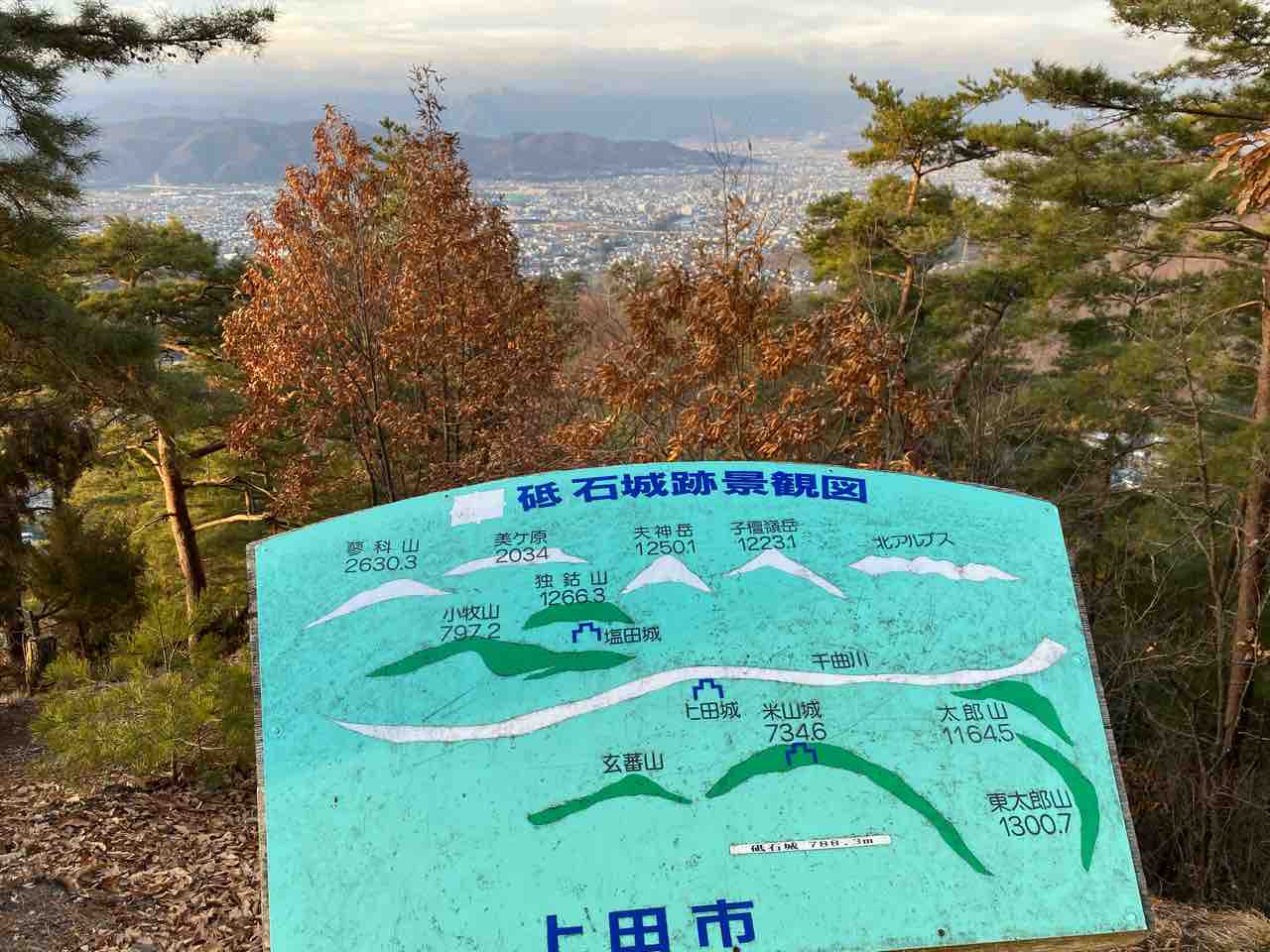 桝形城跡からは真田方面に大パノラマが広がり、烏帽子岳、四阿山、根子岳を望むことができる。