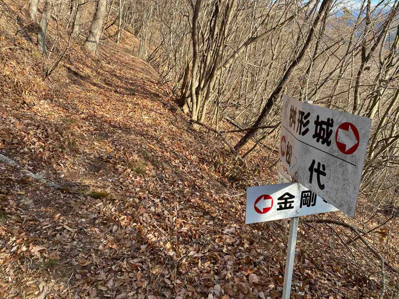 金剛寺分岐(峠)の十字路。縦走路は真っ直ぐ。