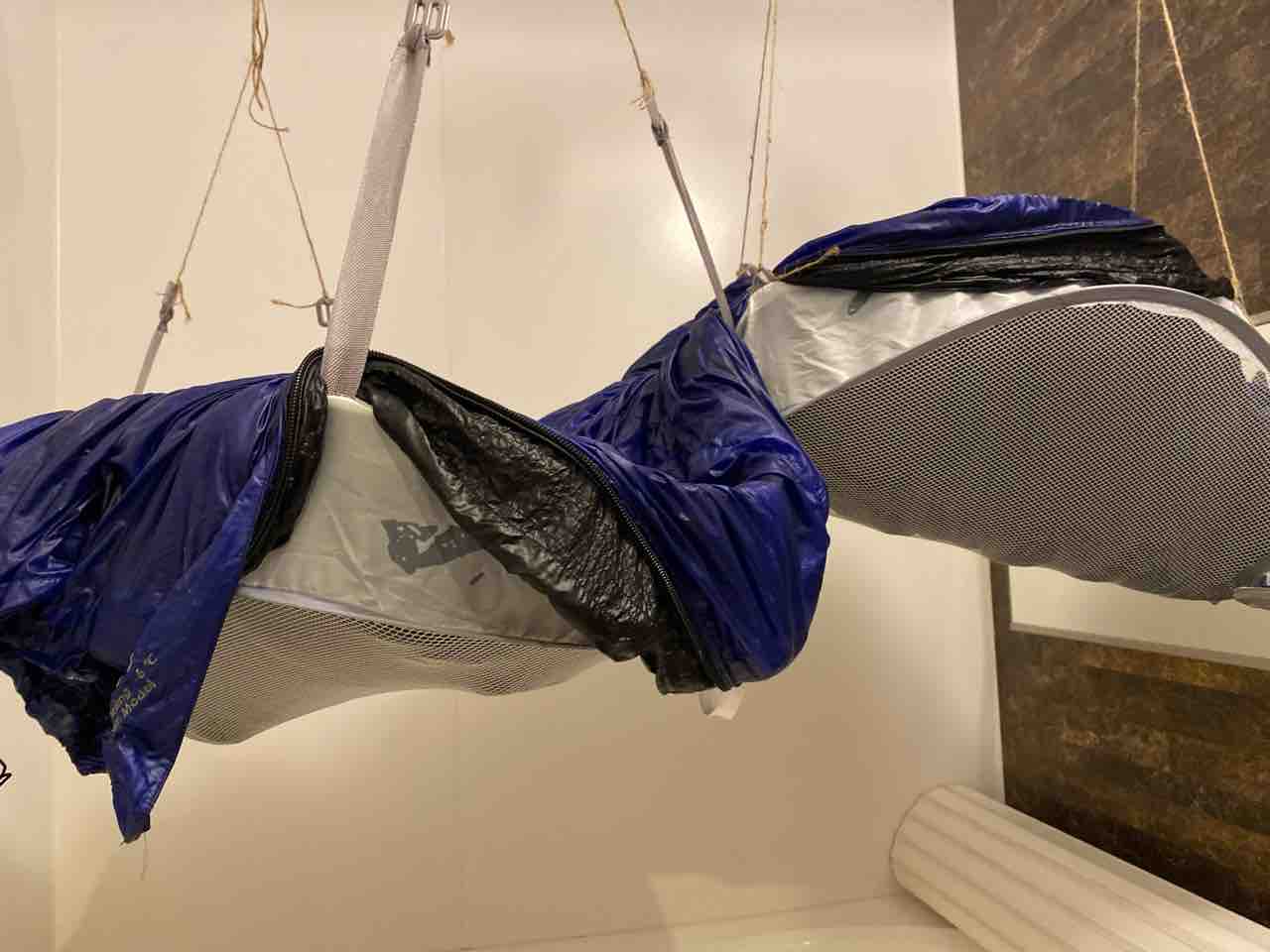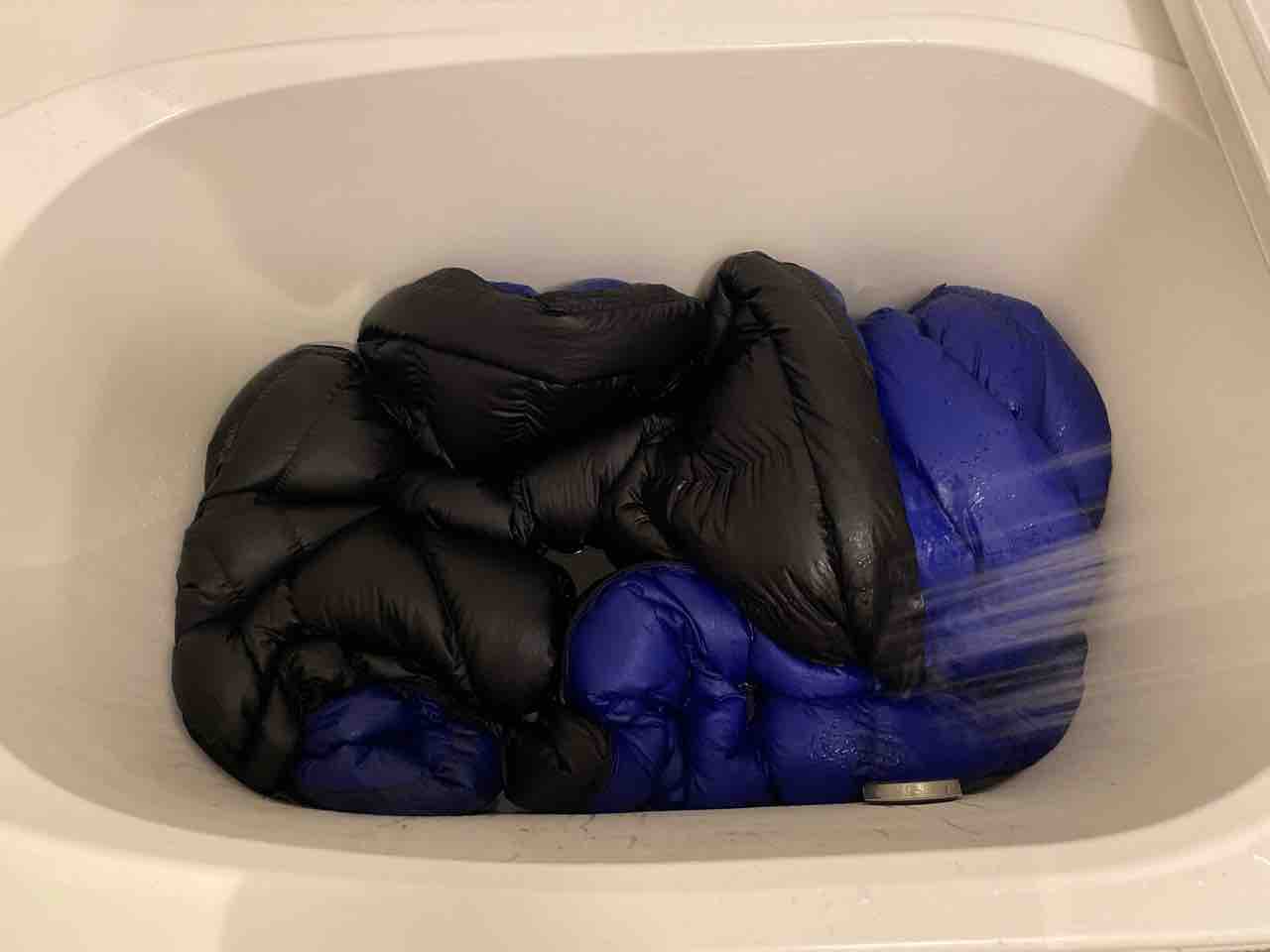 ダウンシュラフを洗うのはなかなか大変である。なぜかというと、羽毛は濡らすと全然乾かないからだ。ダウンは濡れると萎んで玉になってしまう。こうなると乾くのにはかなりの時間を要する。ダウンシュラフを濡らしてはいけないと言われる所以である。
