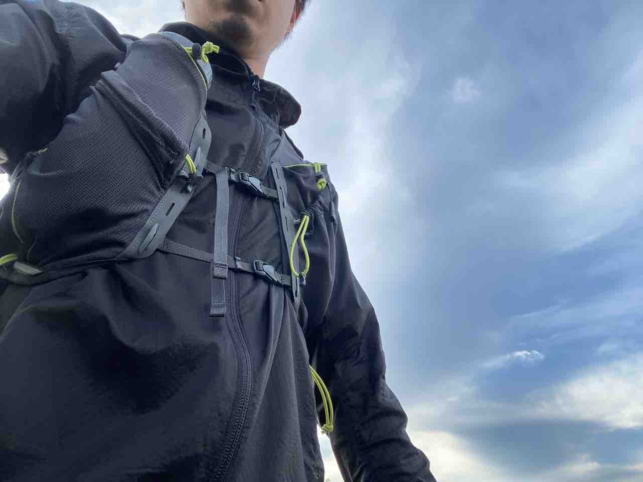 ということで、僕は今まで5リットルのトレランザックを背負って、ショルダーにボトルとスマホを入れていた。これが一番揺れやズレが無く、ストレス無しで走れるからだ。でも唯一の欠点は背中が蒸れるところ。いくら通気性がよくても背中にずっとザックが当たっていると汗の乾きが悪い。背中には荷物が入っていないのにわざわざ蒸れる状態を作るのも嫌だったし、これからの時期はもっと汗をかく。なんとかせねば。