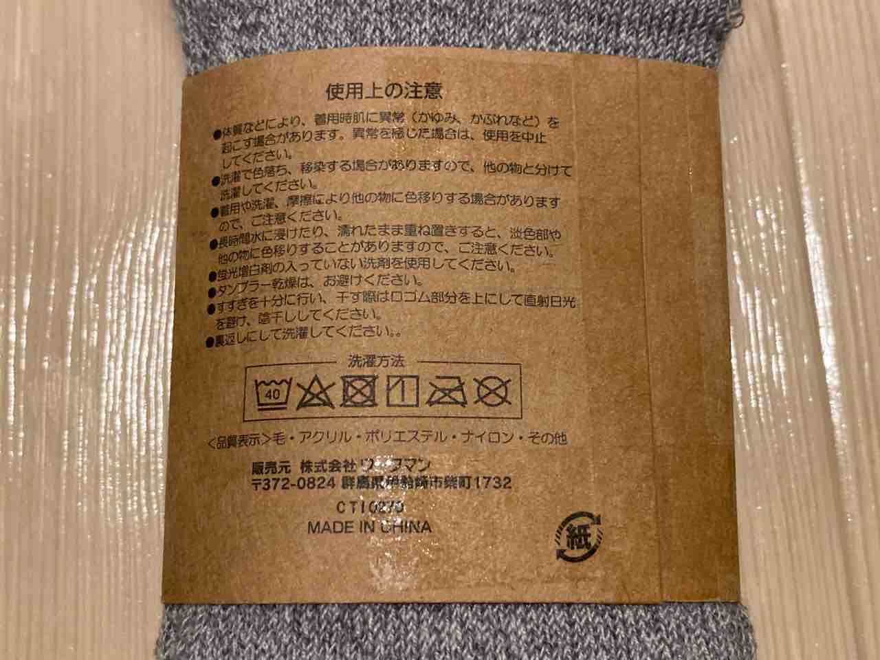 ちなみに…前回紹介した靴下との違いだが、パッケージには共に「メリノウール ソックス」とあって一目で見分けがつかない。しかしよく見ると“feel cold”と書いてあるのが足首上パイル無しで、“extreme cold”と書いてあるのがオールパイルとなっている。お間違えのないように…。