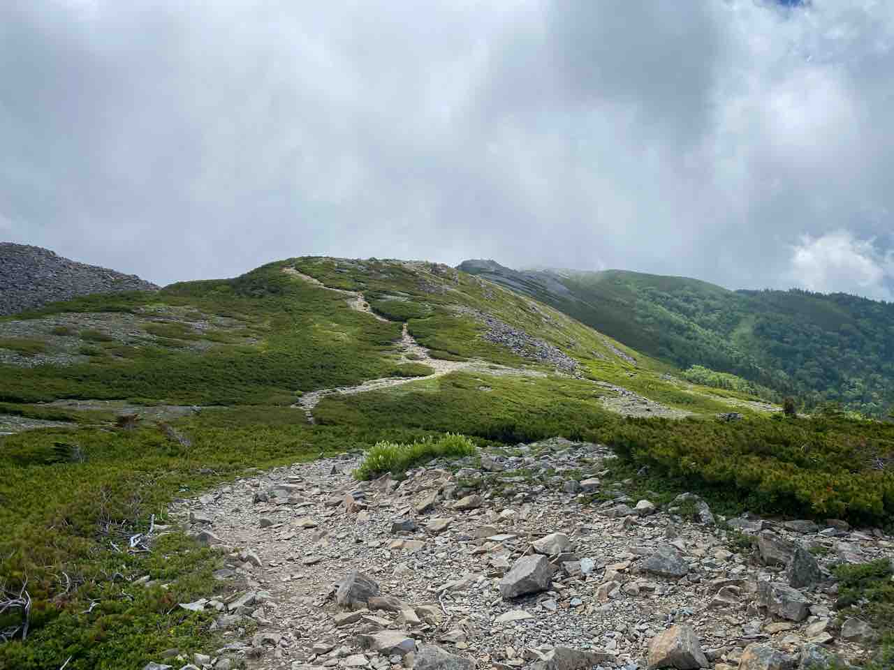 登山道はトレイルランニングコースというよりスカイランニングコース