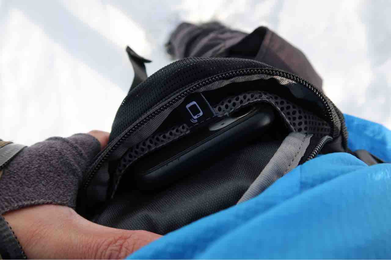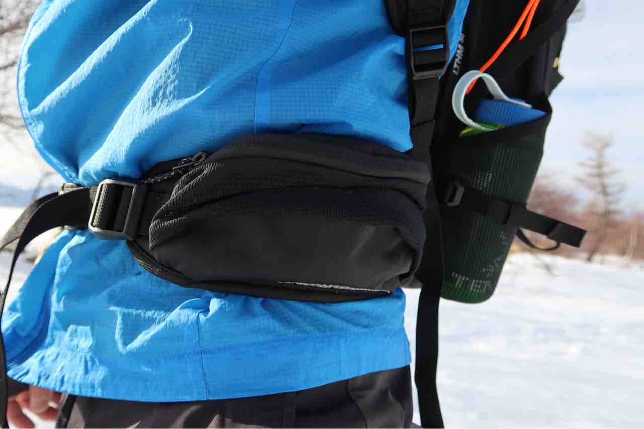 ヒップベルト(ウエストベルト)には便利なファスナー付きメッシュポーチ(左)と