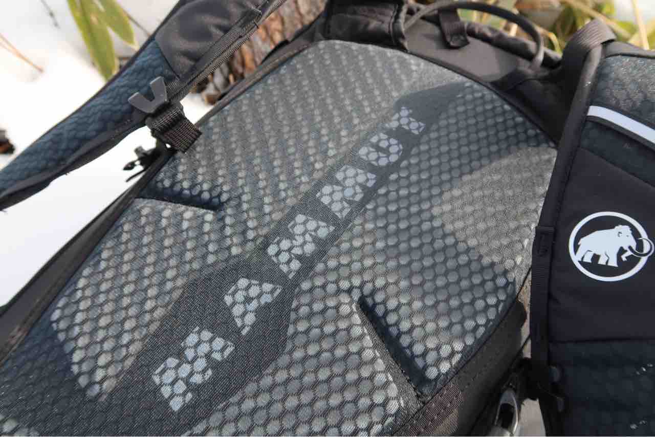 背負ったときザックと背中の間に空気の通り道がある構造になっており背中にこもる熱気を逃す。同じような構造はドイター社のエアコンタクトシステムが有名だが、いまやほとんどのメーカーが採用しているマストの機能。