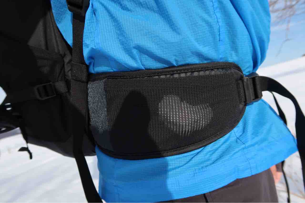 ヒップベルト(ウエストベルト)はハーネス使用を想定して取り外しが可能。ちゃんとクライミングでも使用することを考慮しているところが頼もしい。