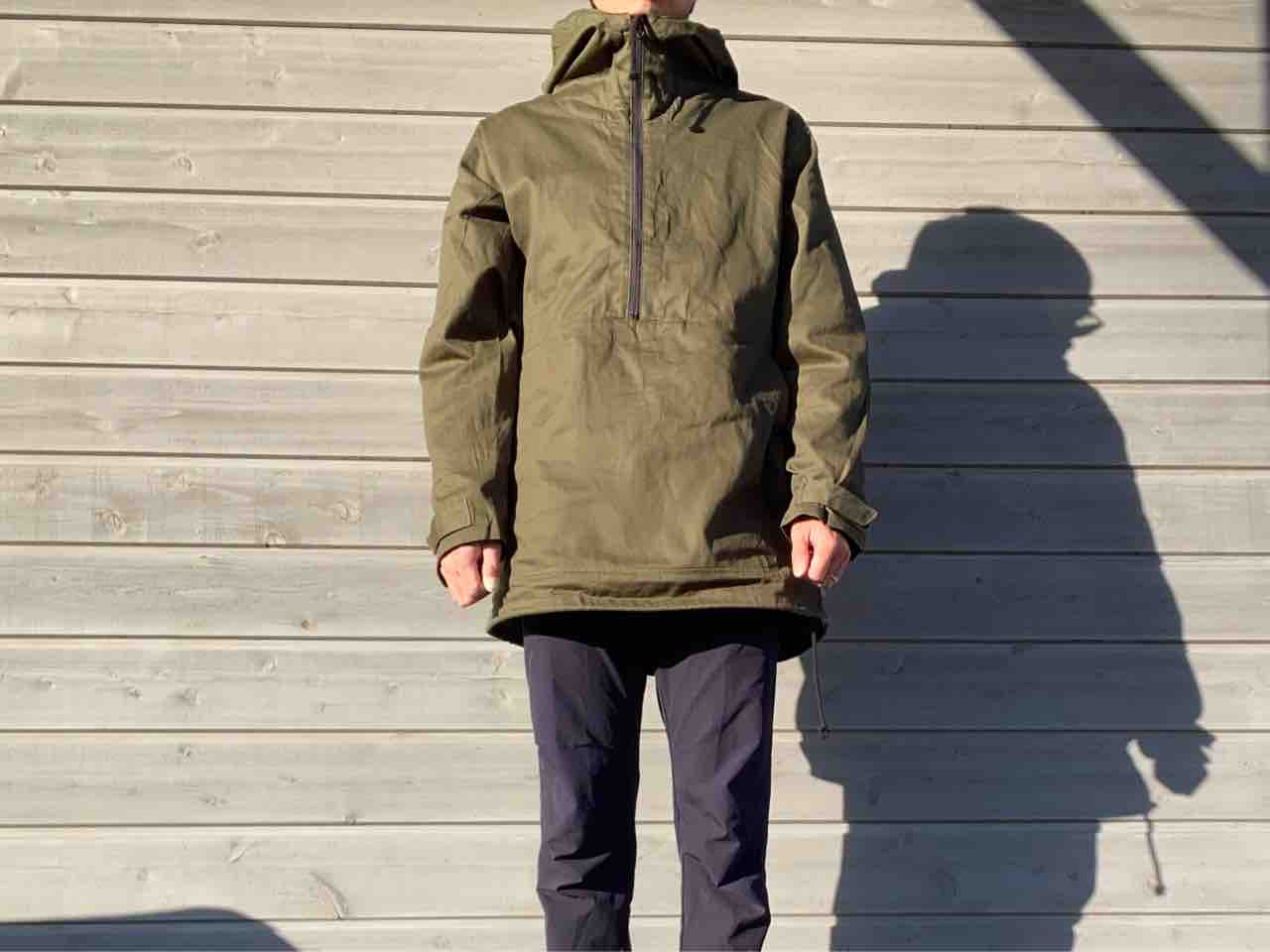 アノラックなのでファスナーがハーフになっていて脱ぎ着がやや面倒だけどその分腹部に巨大な貫通ポケットが付いている。あとジャケットタイプよりアノラックのほうが安い。