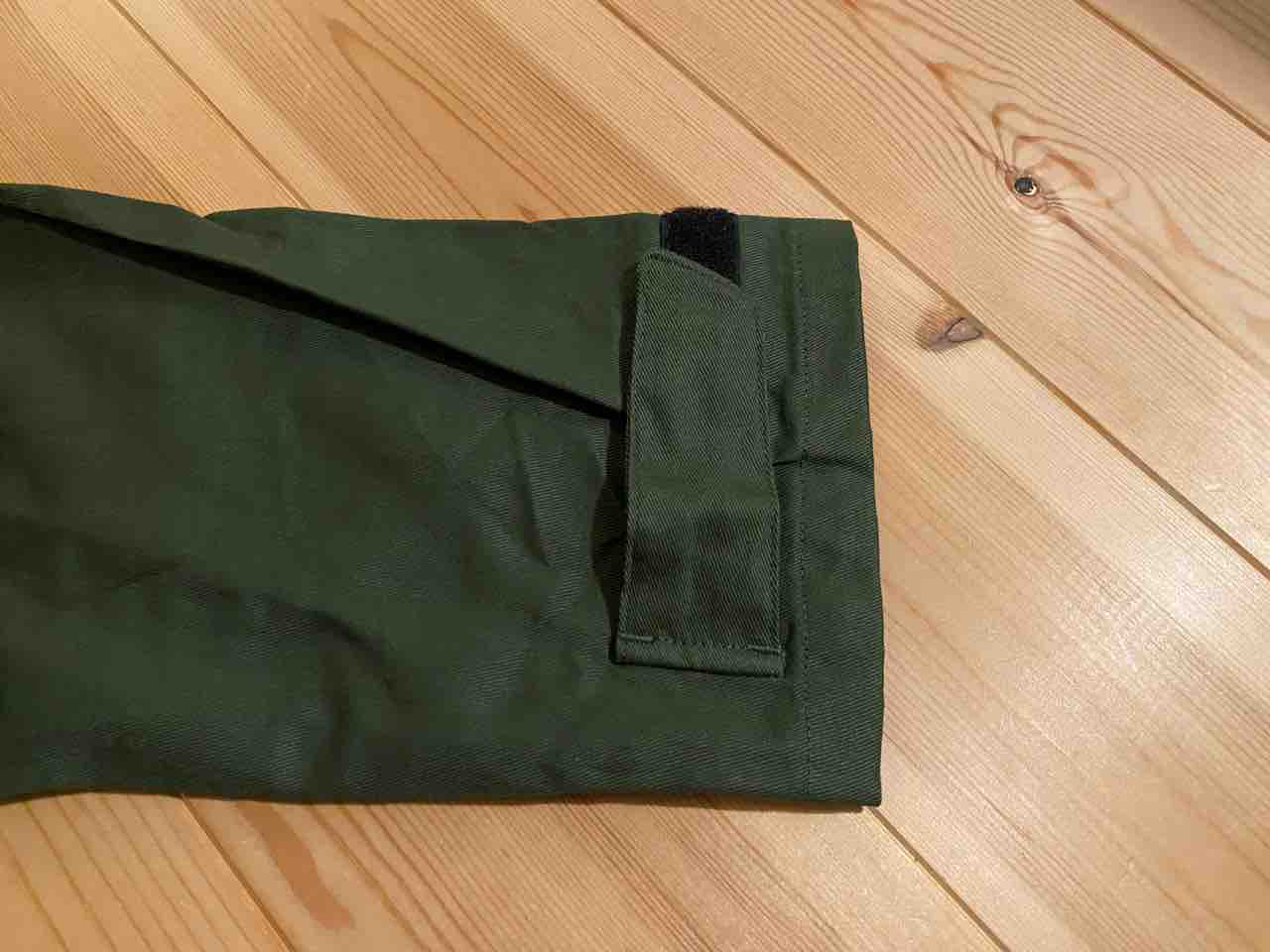 袖口にはベルクロテープ付きなので袖が長すぎても腕まくりなど調整可能。