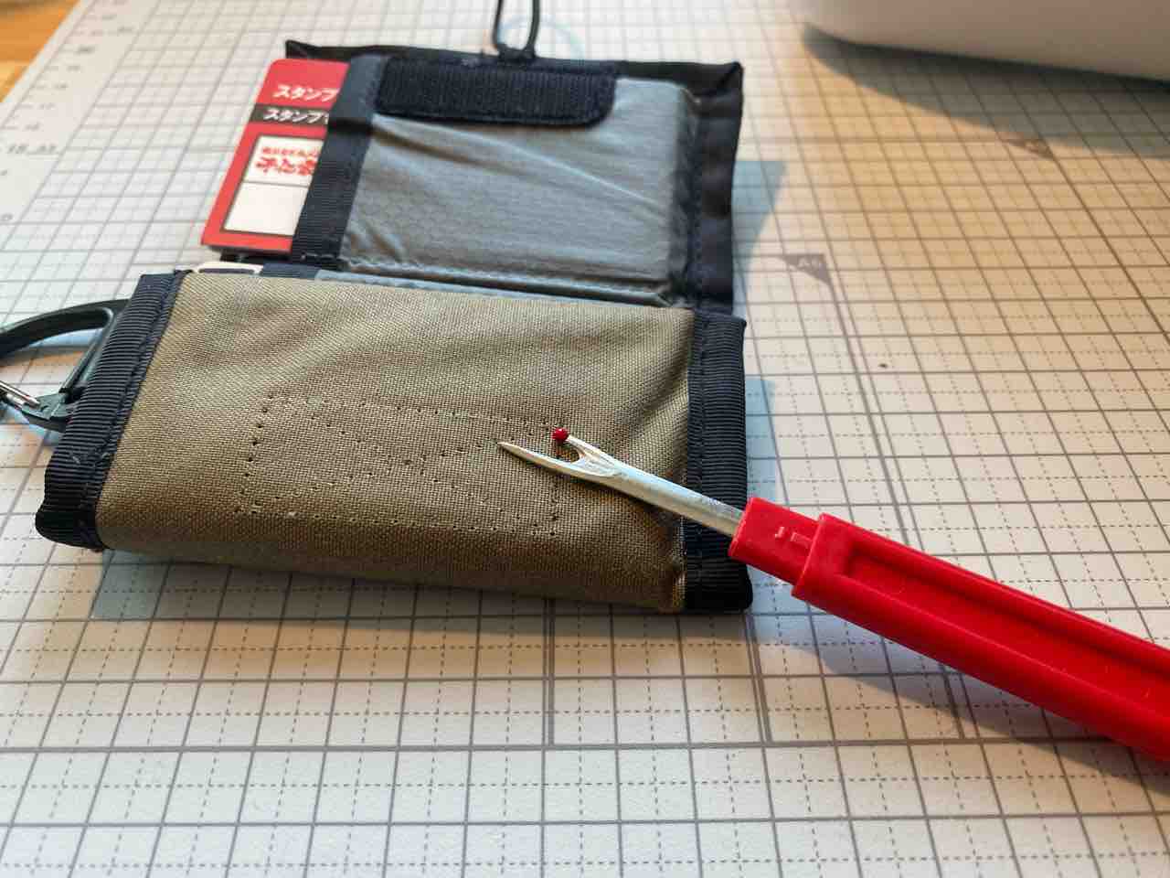 これでベルクロのケバケバ部分(毳毳※これでケバケバと読むらしい!)を外す。くっつき虫側は財布の縁と一体で縫われている感じで下手に外すと財布を破壊しかねない恐怖で手を止めた。※毳毳の正しい意味は毛羽立っているではなく、肌とかケバい(死語?)と同義です。