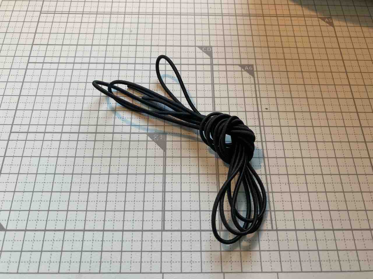 コードは縁の黒いところに適当に縫い付けた。分厚くて縫いにくいのに加えて、外れないようにと沢山縫った結果、縫い目がかなり汚くなってしまったので拡大写真は割愛する。どうせ目立たないし、コードは外れなければよいのだ。