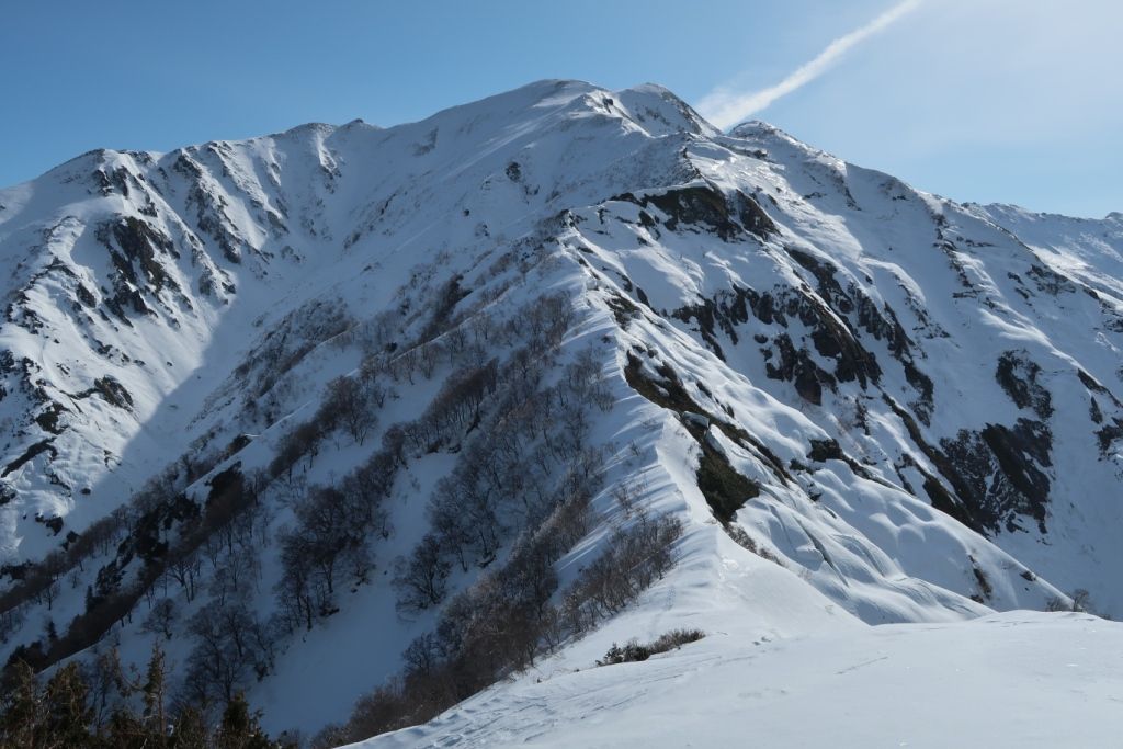 茂倉岳新道は細めの尾根で、ガリガリの斜面をトラバースする箇所が結構あります。