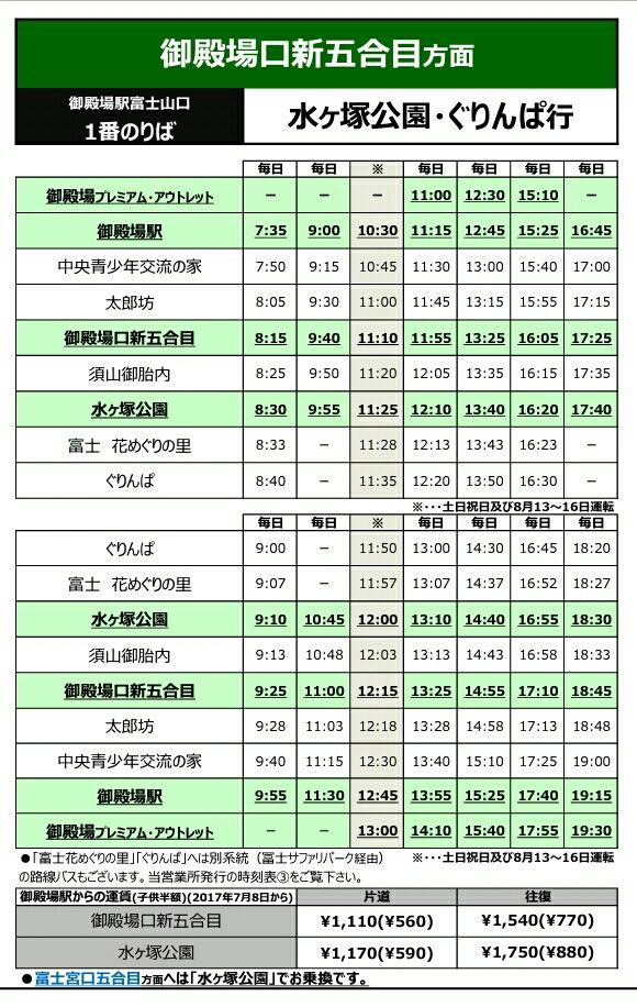 ちなみに一合目(馬返し)までのバスも富士急行線の富士山駅から出ています。