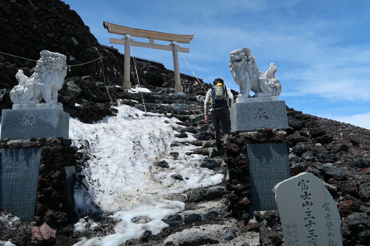 最終的に同行のTNに荷物のほとんどを持ってもらい、お鉢の淵にある富士浅間神社奥宮まで到達できました。TNは一人でお鉢巡りをすることになり、僕は浅間神社奥宮の社の軒下で休んでいました。休憩中、ささいな仕草も億劫でほとんど動くことなく寝て過ごしました。